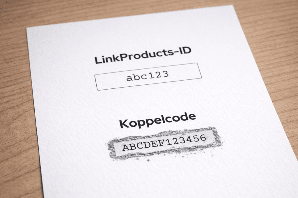 Je vindt de ID en koppelcode op de verpakking of in de begeleidende brief van je LinkProduct. Je koppelcode is beschermd door een kraslaag en moet worden afgekrast.